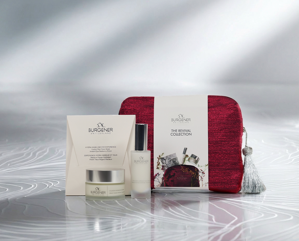 Revitalisez votre peau avec la collection exclusive Revival, comprenant la Crème Visage Collagène Intense, le Sérum Visage Collagène Intense, et le Masque Hydra & Experience Yeux.